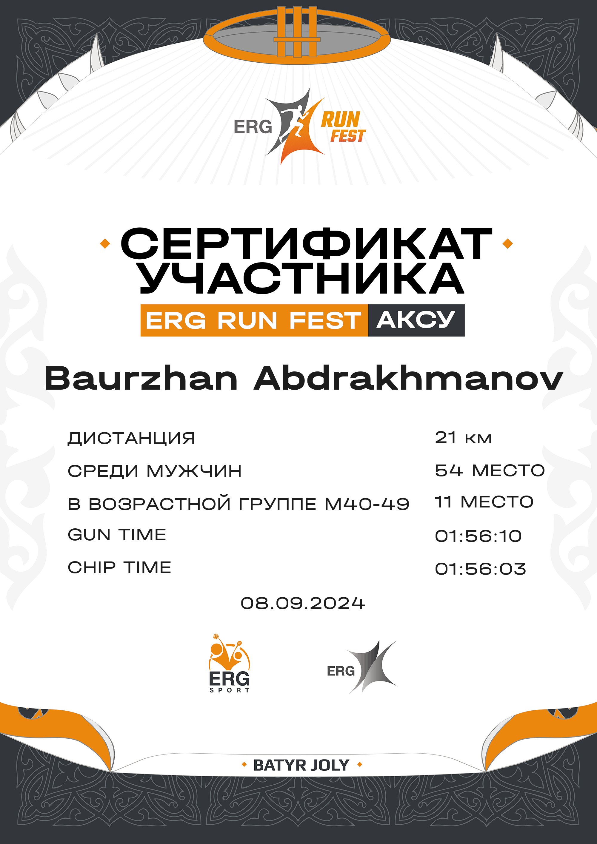 | 52 | Berik Abdirakhman | ![]() | Қоржынкөл | 55 | 00:06:26.00 | 00:18:13.00 | 00:33:21.00 | 00:45:19.00 | 01:00:29.00 | 01:12:33.00 | 01:29:22.00 | 01:42:23.00 | 01:52:24 | 01:52:20 | 5:19 | Скачать |