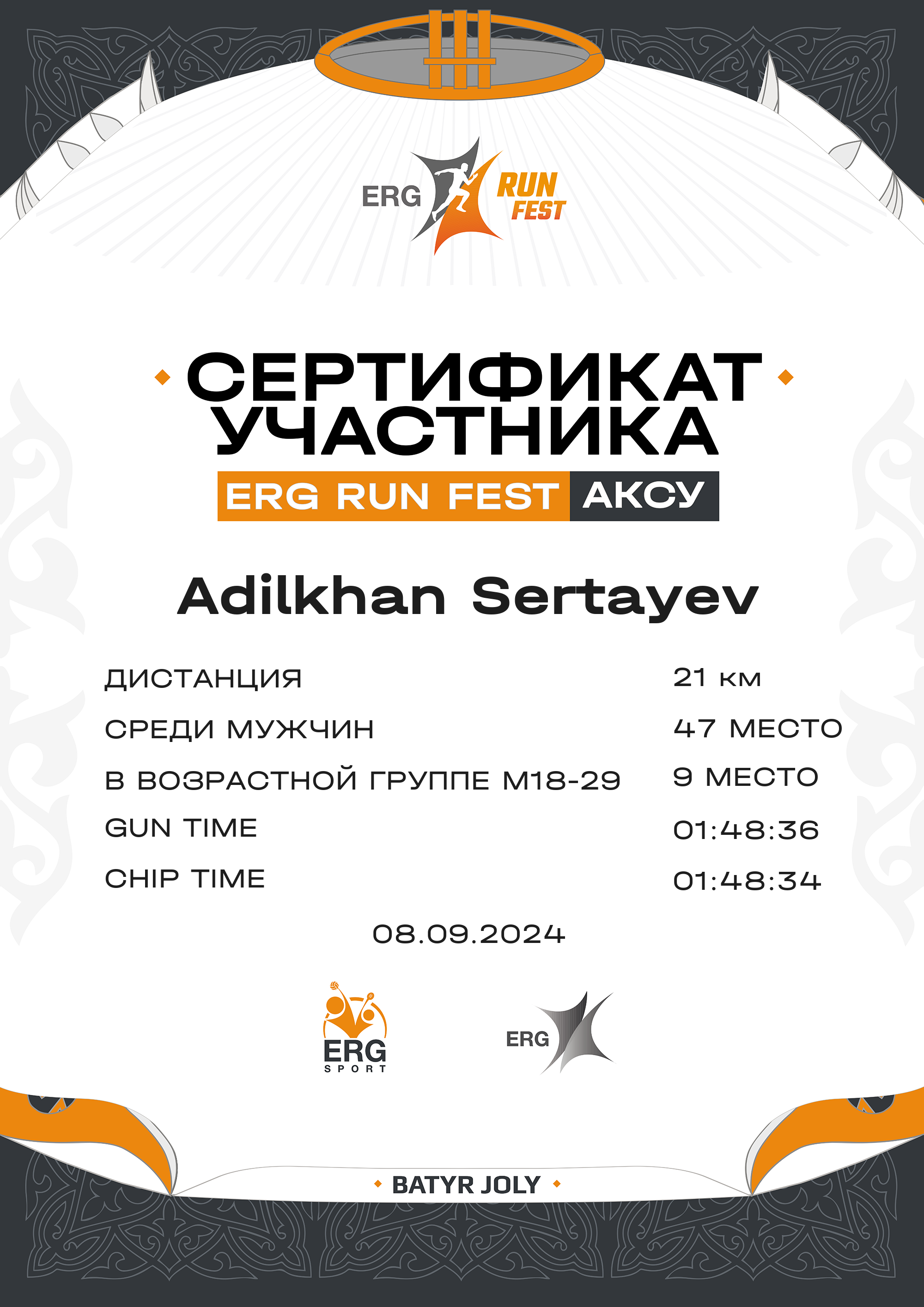 | 70 | Darkhan Arystambekov | ![]() | Павлодар | 42 | 00:08:02.00 | 00:22:41.00 | 00:41:04.00 | 00:55:37.00 | 01:13:33.00 | 01:27:25.00 | 01:46:23.00 | 02:01:12.00 | 02:12:22 | 02:12:18 | 6:16 | Скачать |