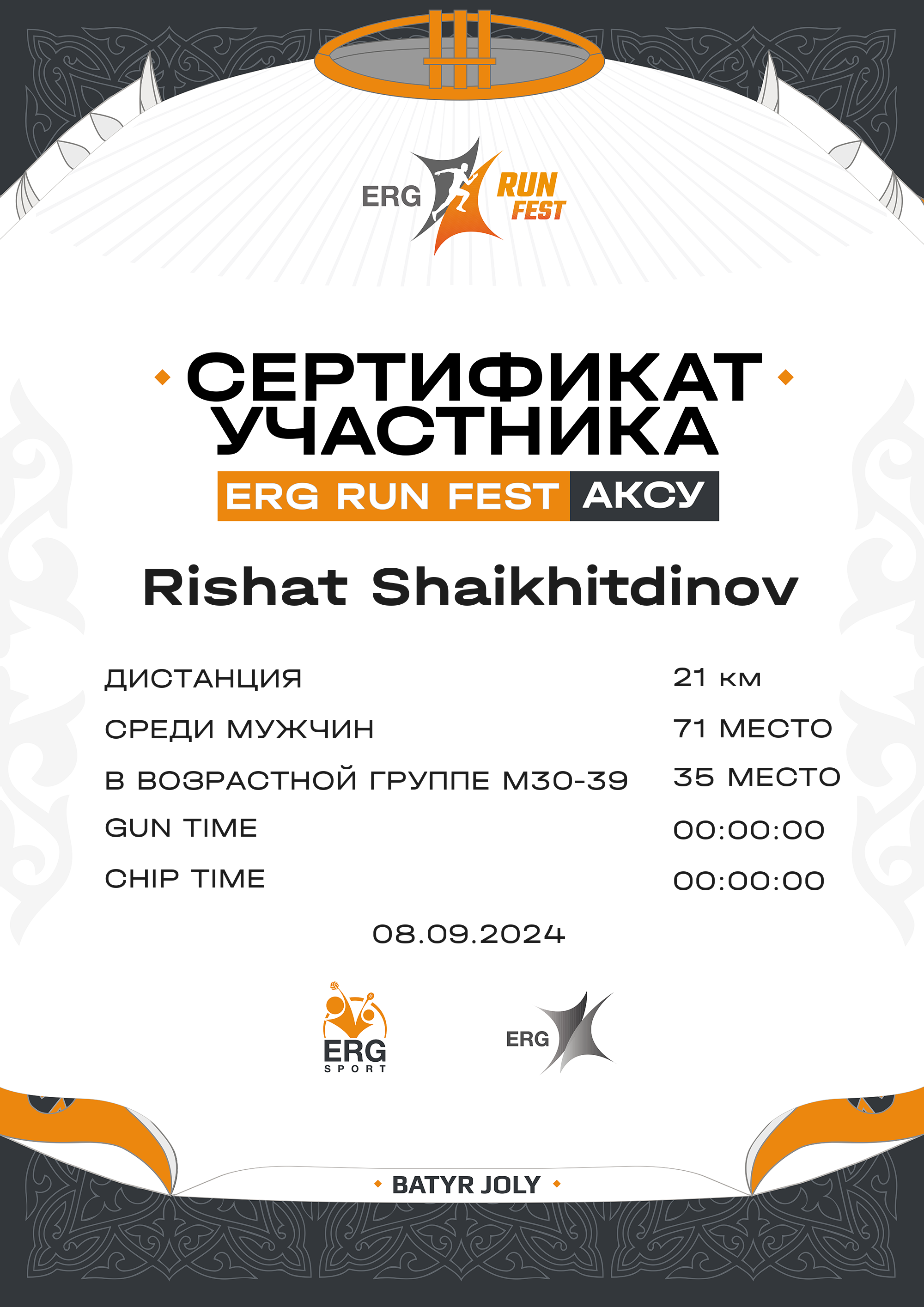 | 5 | Akpeil Kutuev | ![]() | Семей | 86 | 00:23:23.00 | 00:31:50.00 | 00:42:45.00 | 00:51:37.00 | 01:02:43.00 | 01:11:27.00 | 01:18:37 | 01:12:56 | 3:27 | Скачать | ||