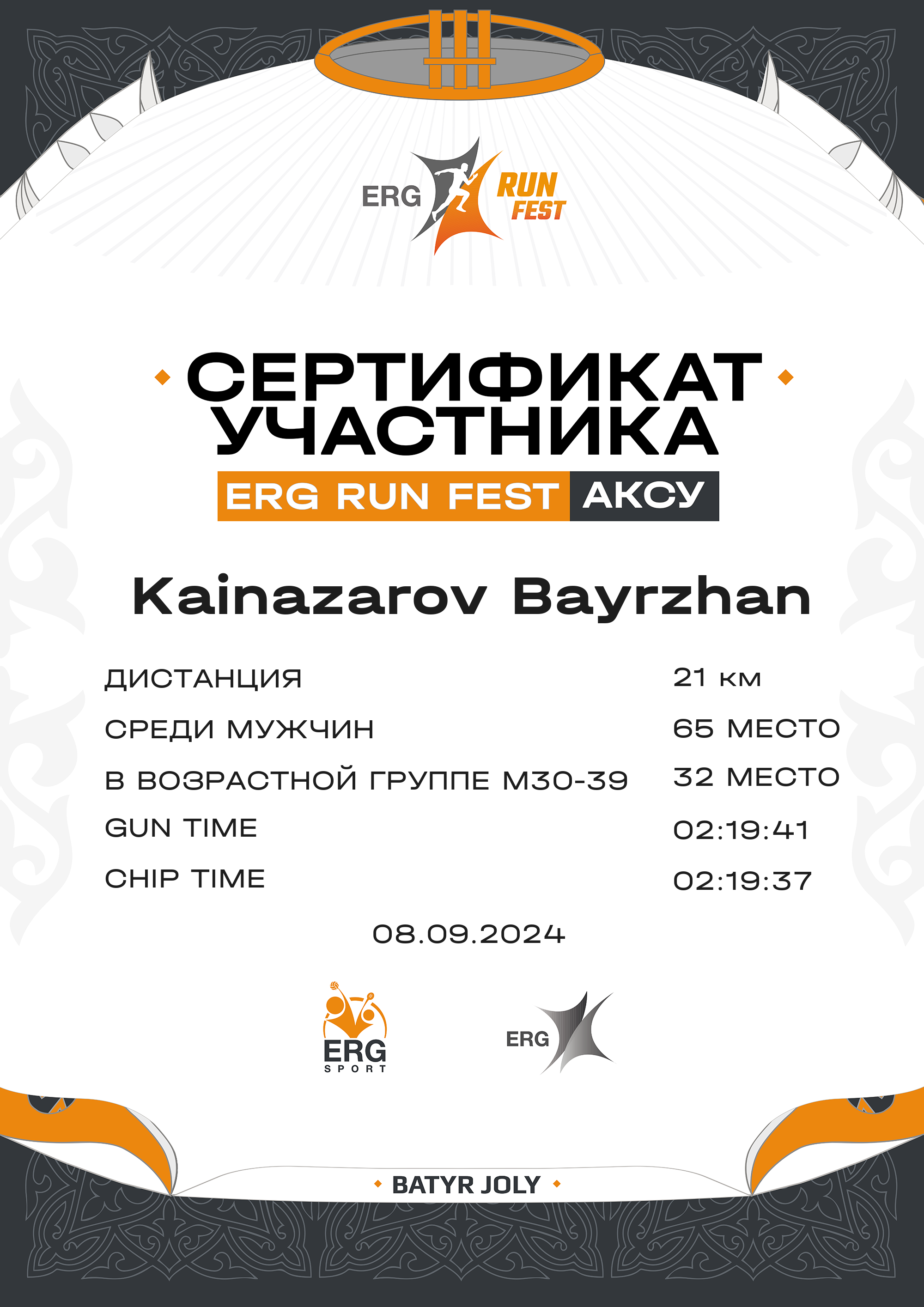 | 38 | Margulan Ramazanov | ![]() | Ekibastuz | 89 | 00:06:10.00 | 00:16:58.00 | 00:30:25.00 | 00:41:11.00 | 00:54:42.00 | 01:05:23.00 | 01:19:15.00 | 01:30:35.00 | 01:39:09 | 01:39:06 | 4:41 | Скачать |