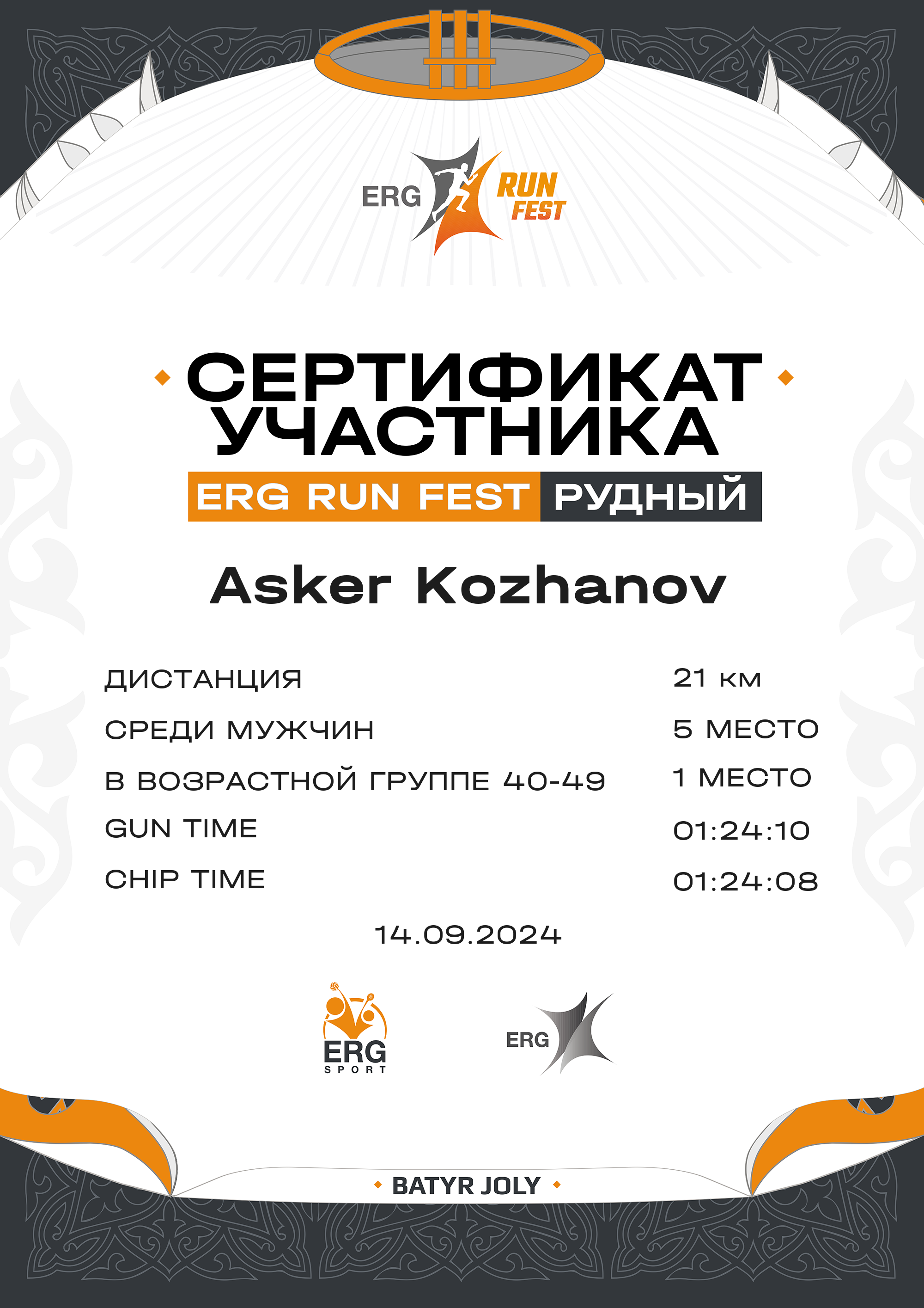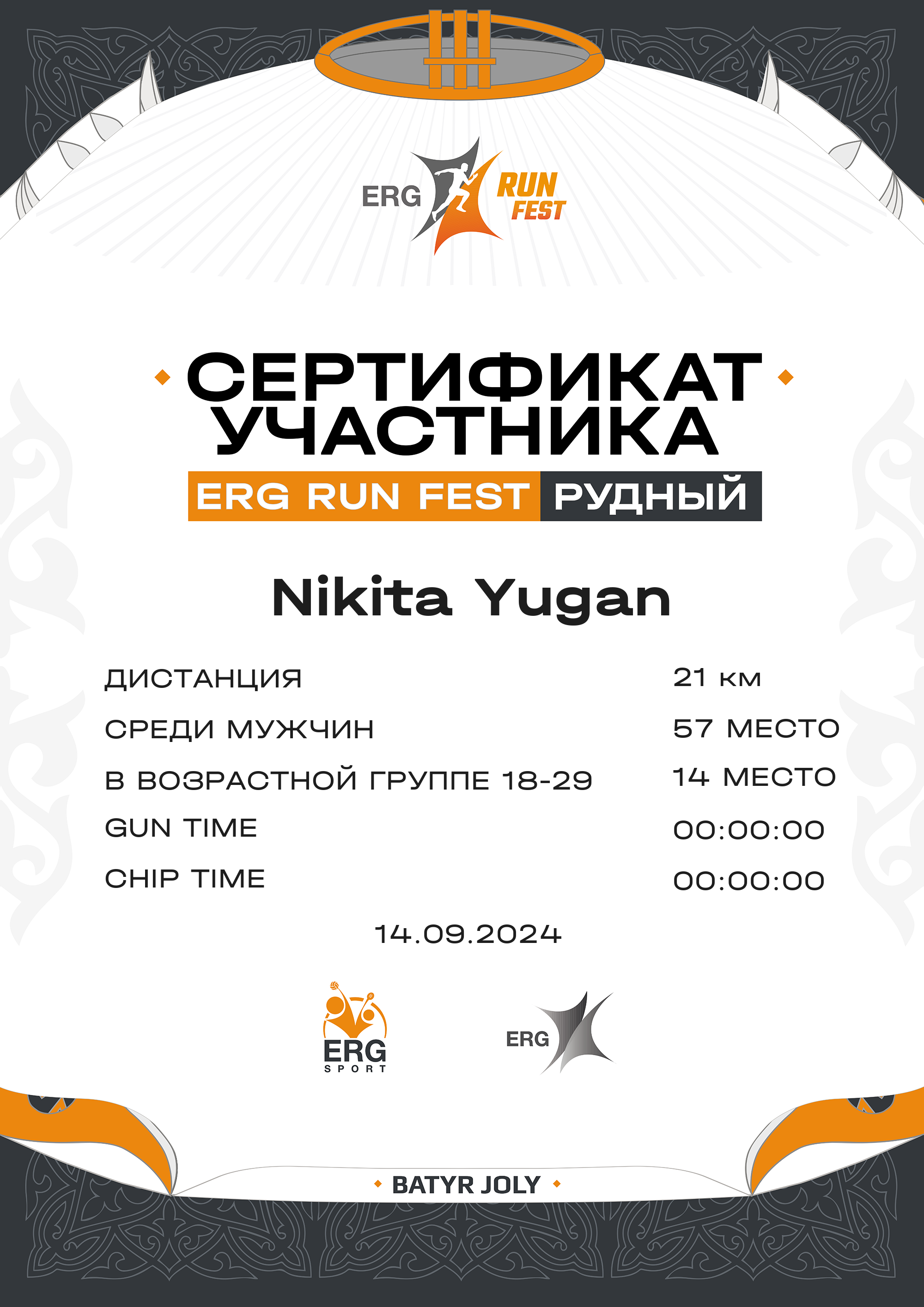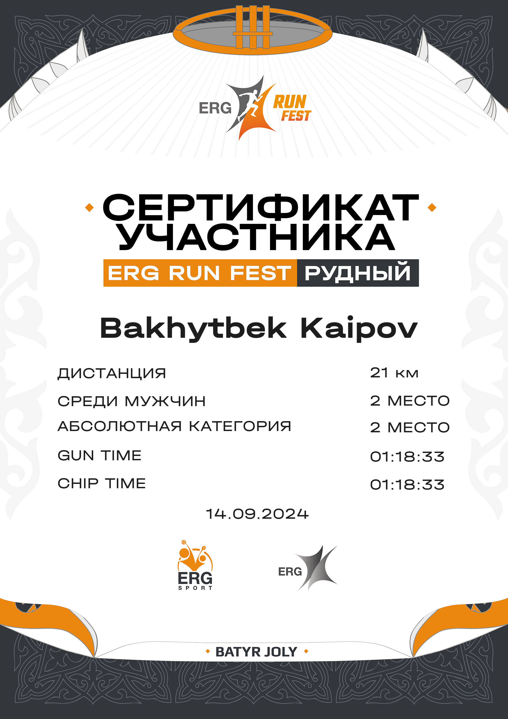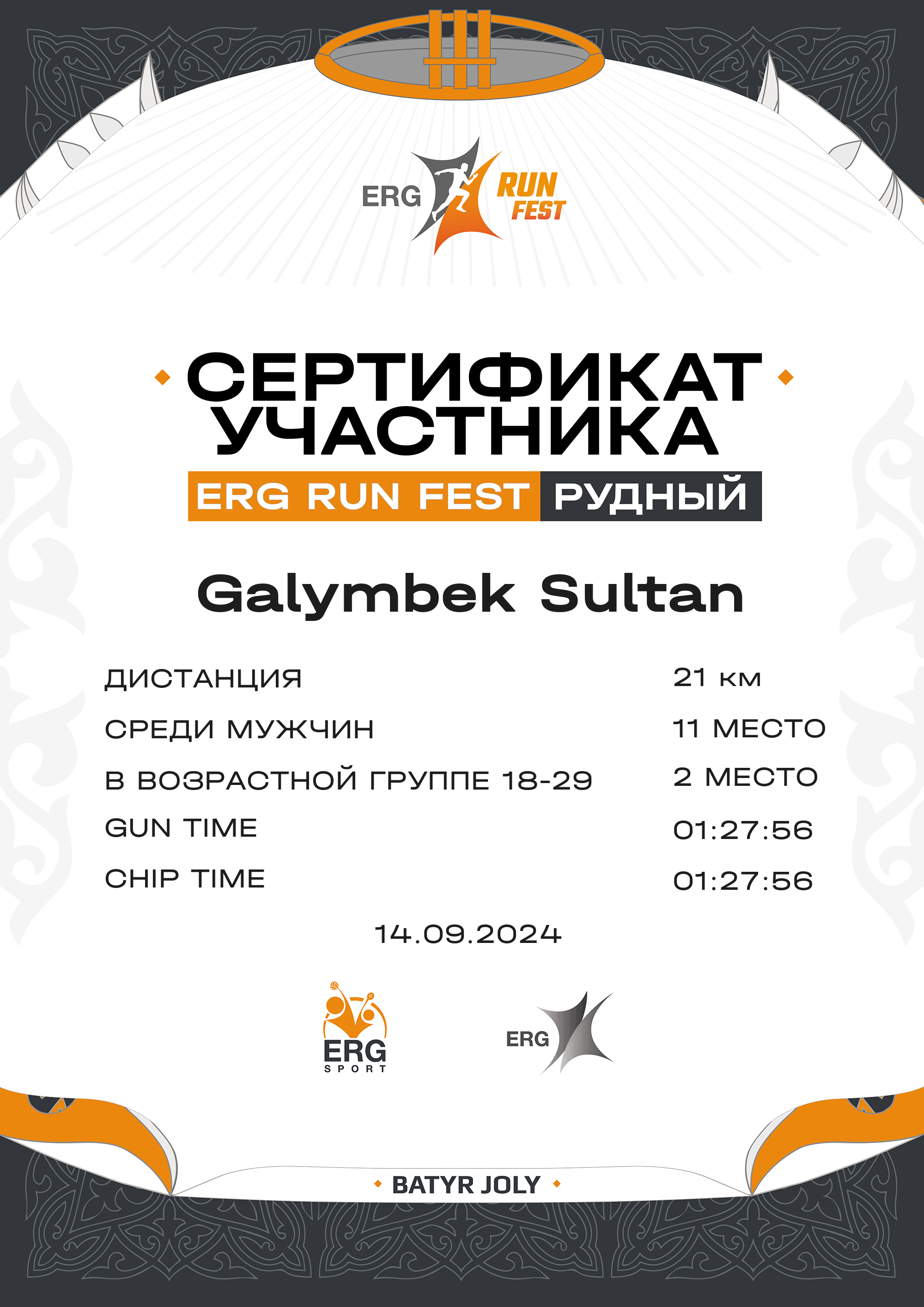 | 11 | Galymbek Sultan | ![]() | Қостанай | 54 | 00:10:02.00 | 00:21:14.00 | 00:53:52.00 | 01:05:26.00 | 01:27:56 | 01:27:56 | 4:10 | Скачать |