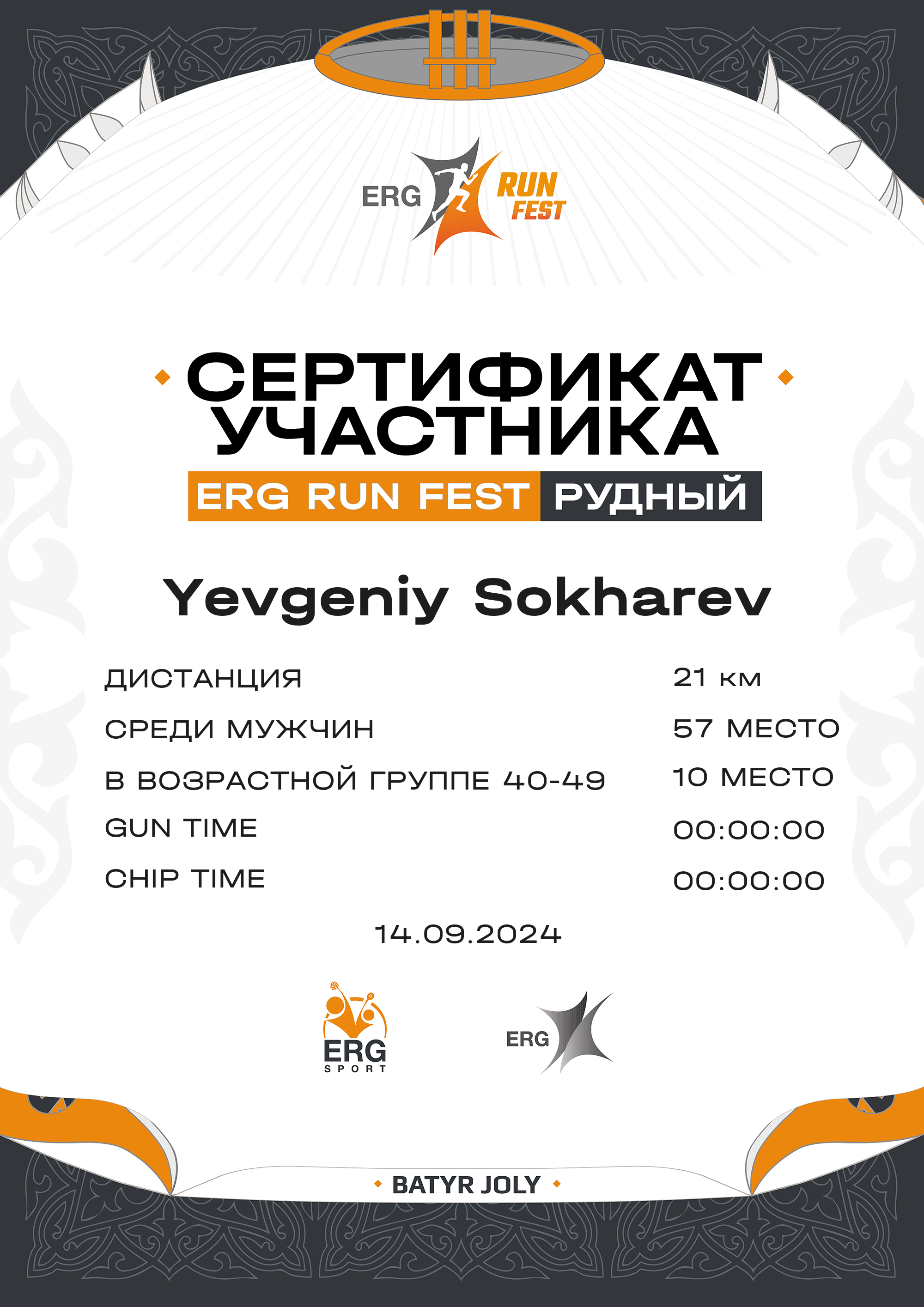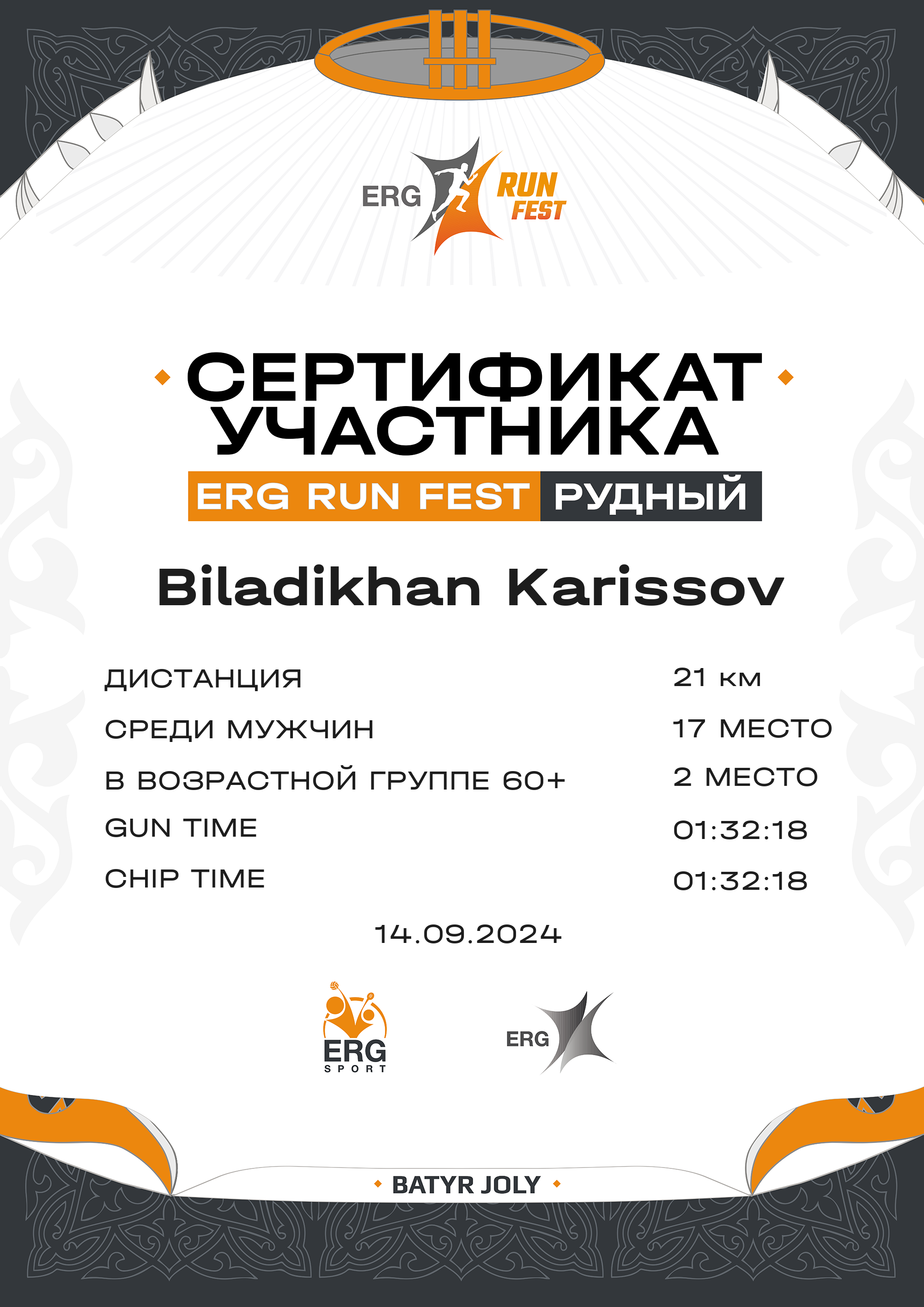 | 65 | Bagit Kojaidarov | ![]() | Костанай | 23 | 00:17:41.00 | 00:38:42.00 | 01:38:21.00 | 01:58:37.00 | 02:37:20 | 02:37:15 | 7:27 | Скачать |