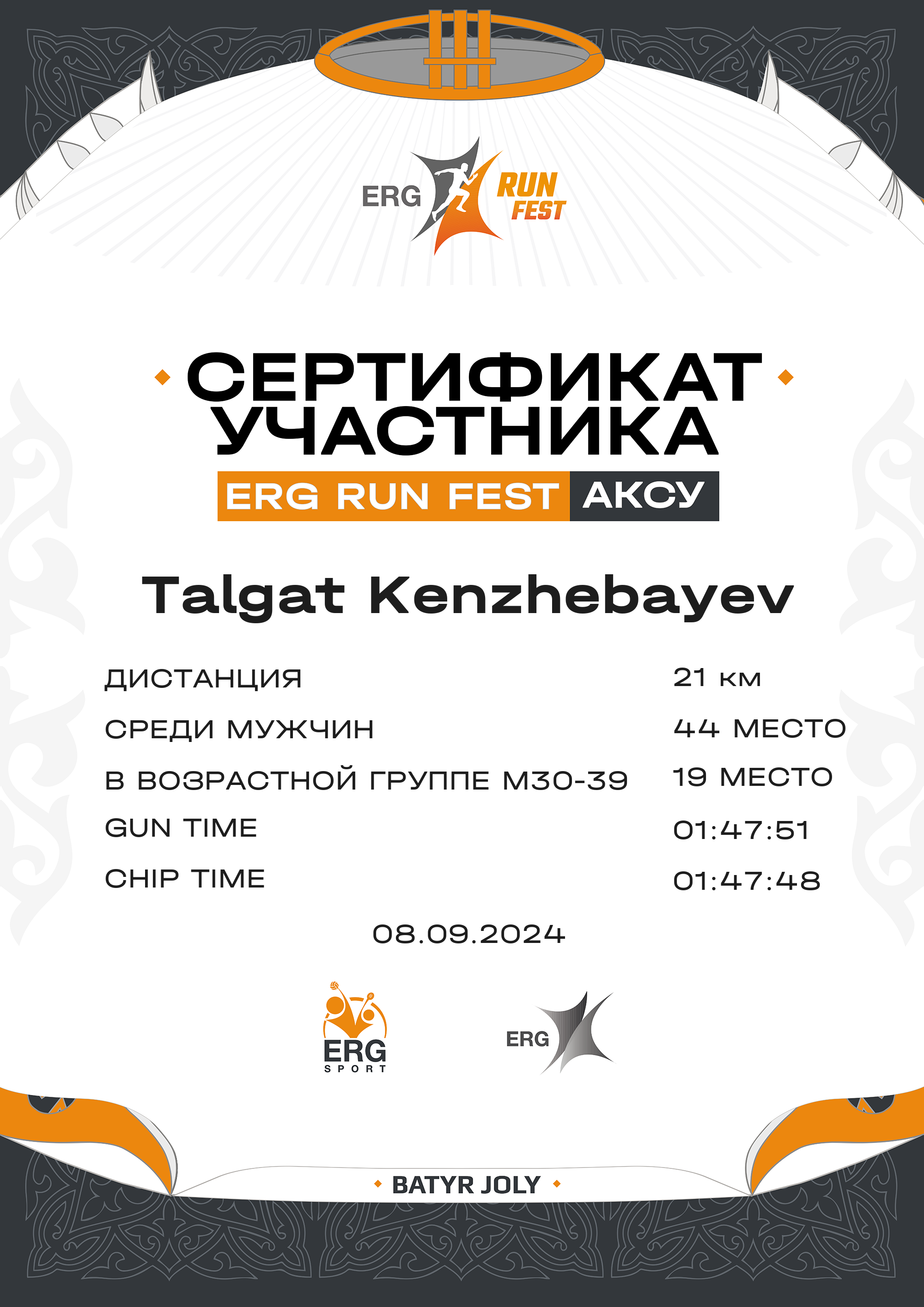 | 38 | Margulan Ramazanov | ![]() | Ekibastuz | 89 | 00:06:10.00 | 00:16:58.00 | 00:30:25.00 | 00:41:11.00 | 00:54:42.00 | 01:05:23.00 | 01:19:15.00 | 01:30:35.00 | 01:39:09 | 01:39:06 | 4:41 | Скачать |