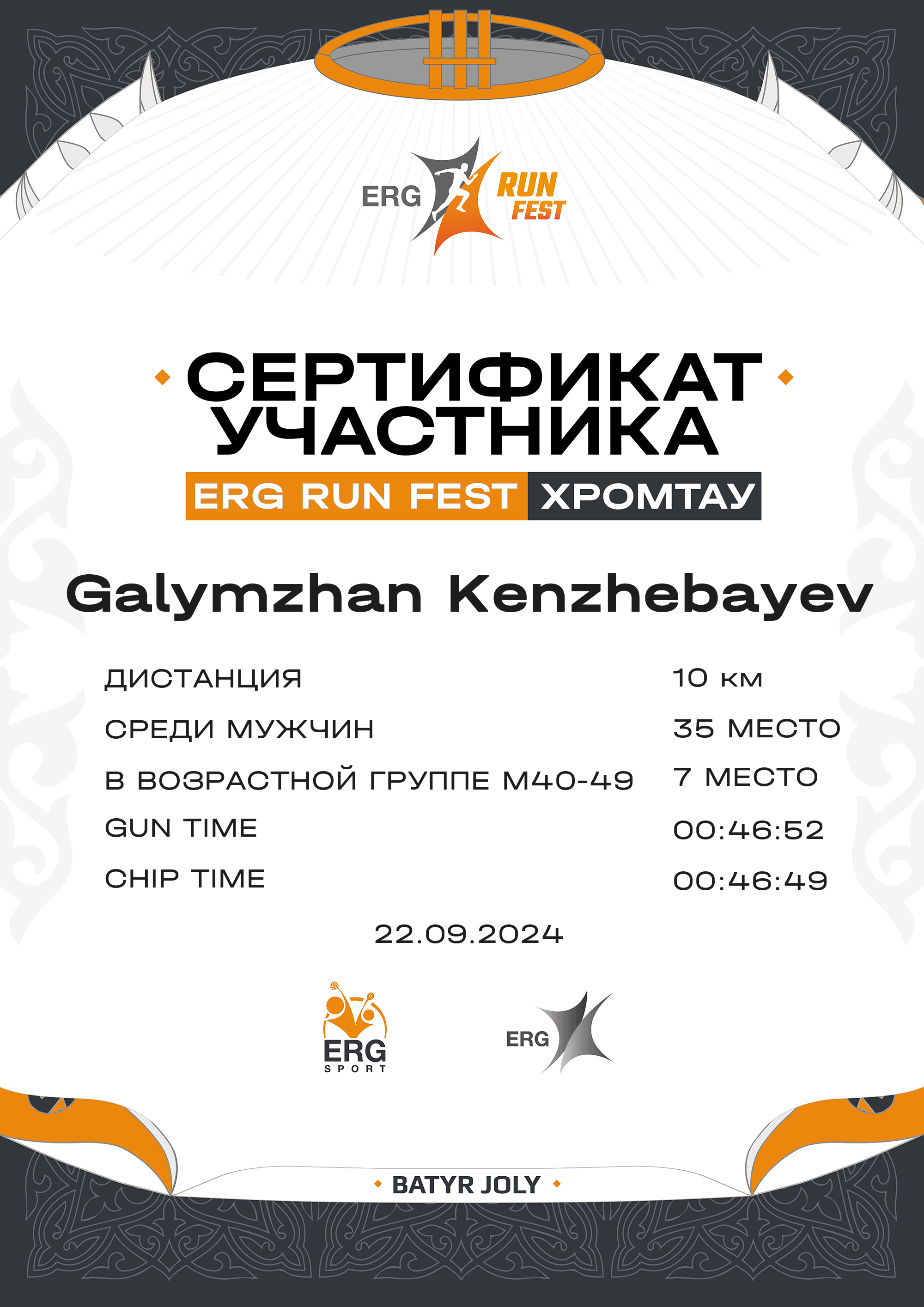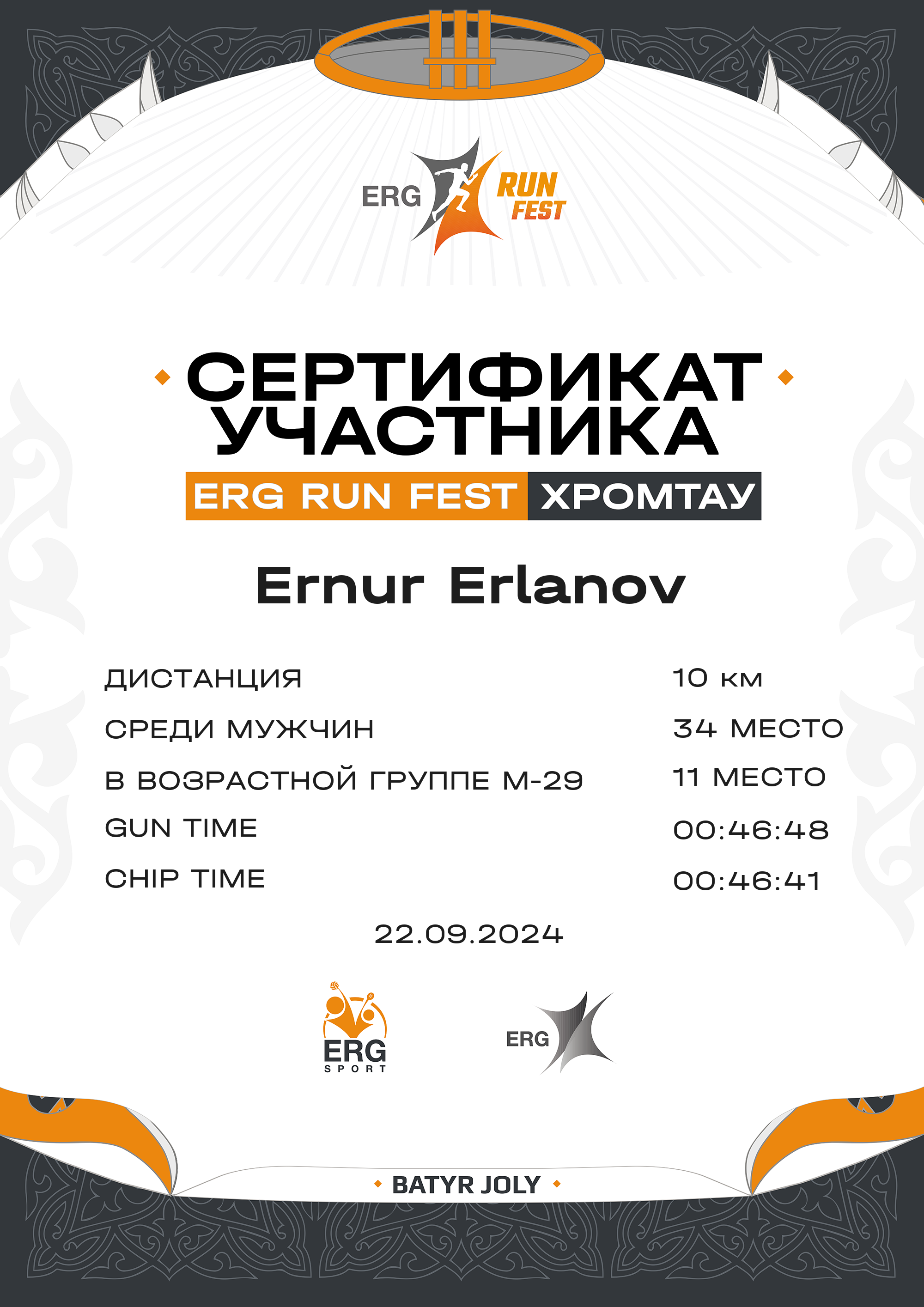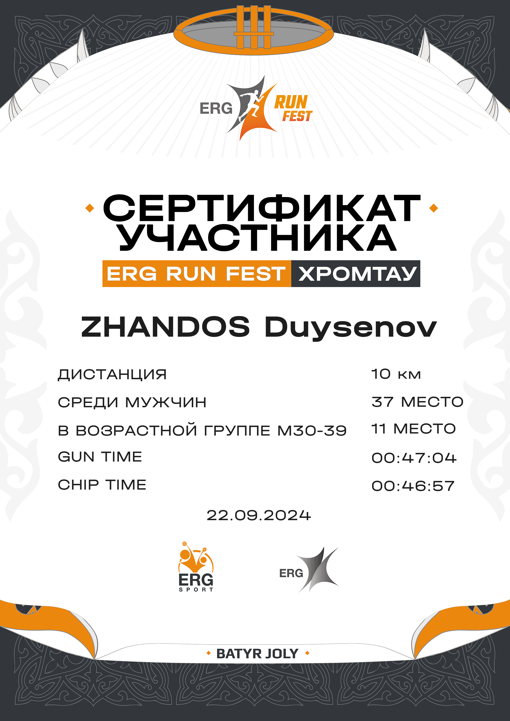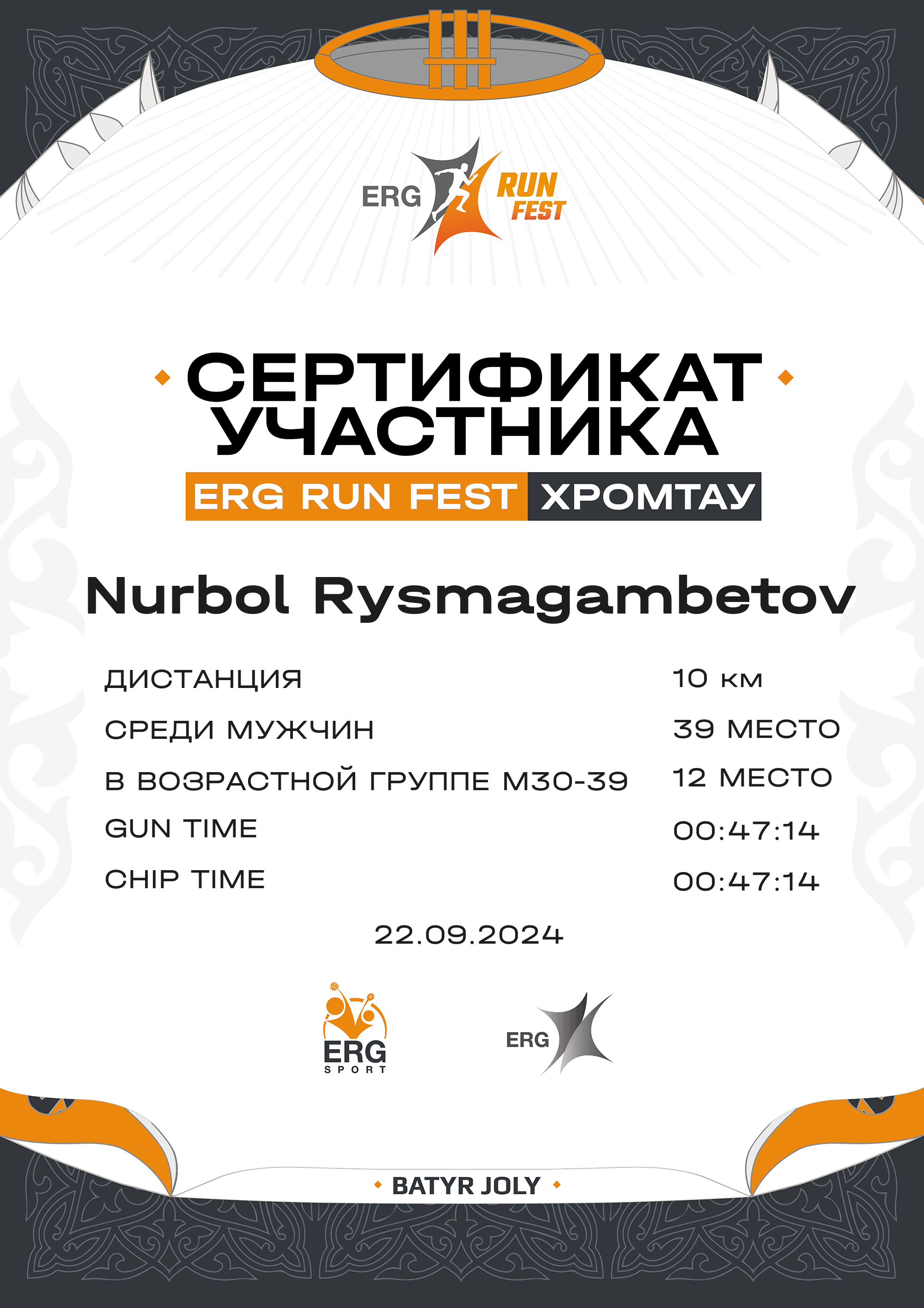 | 41 | Nurbol Rysmagambetov | ![]() | Хромтау | 325 | 00:07:31.00 | 00:18:51.00 | 00:31:11.00 | 00:43:09.00 | 00:47:14 | 00:47:14 | 4:43 | Скачать |