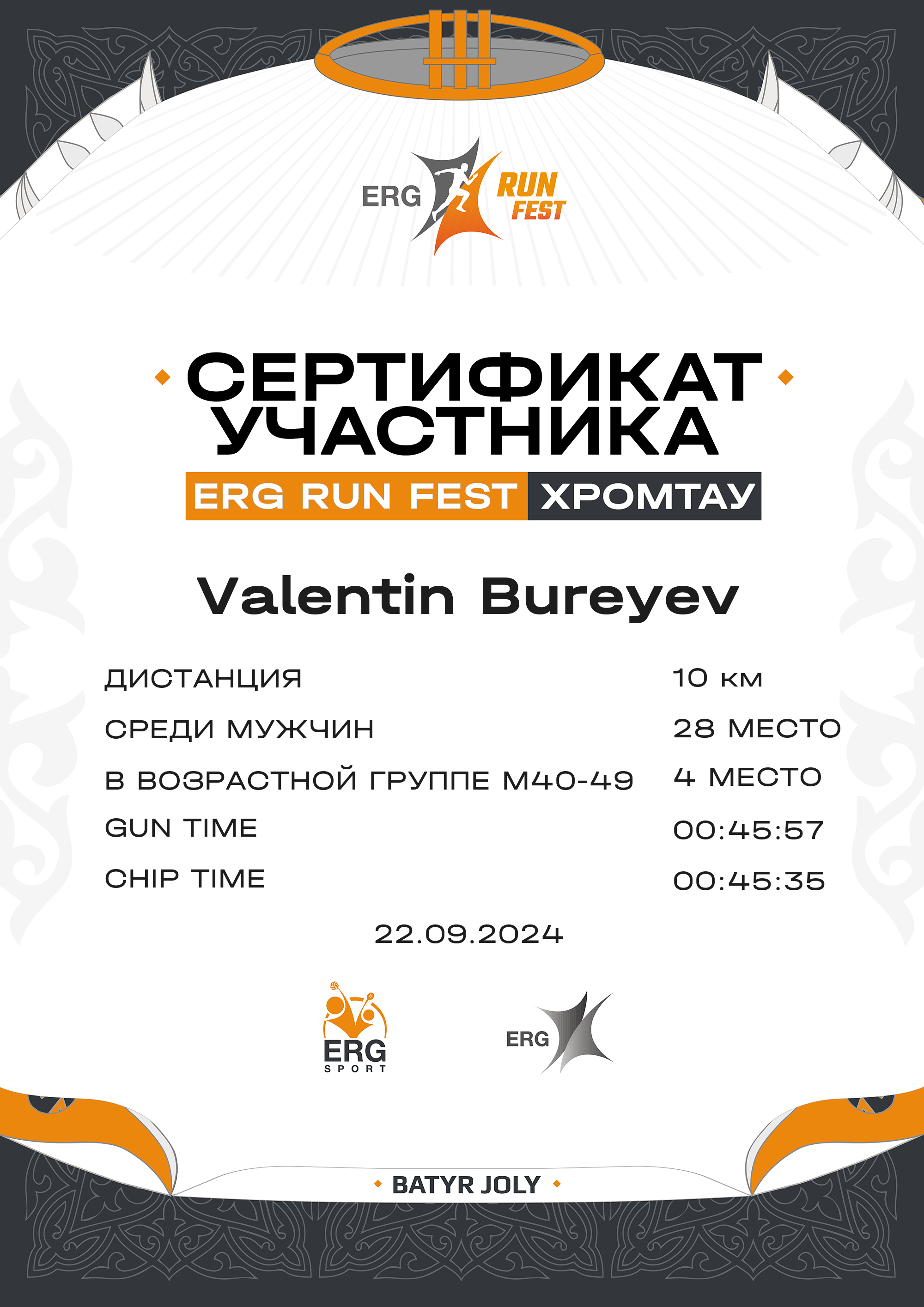 | 28 | Valentin Bureyev | ![]() | Актобе | 402 | 00:07:48.00 | 00:18:41.00 | 00:30:43.00 | 00:42:00.00 | 00:45:57 | 00:45:35 | 4:33 | Скачать |
